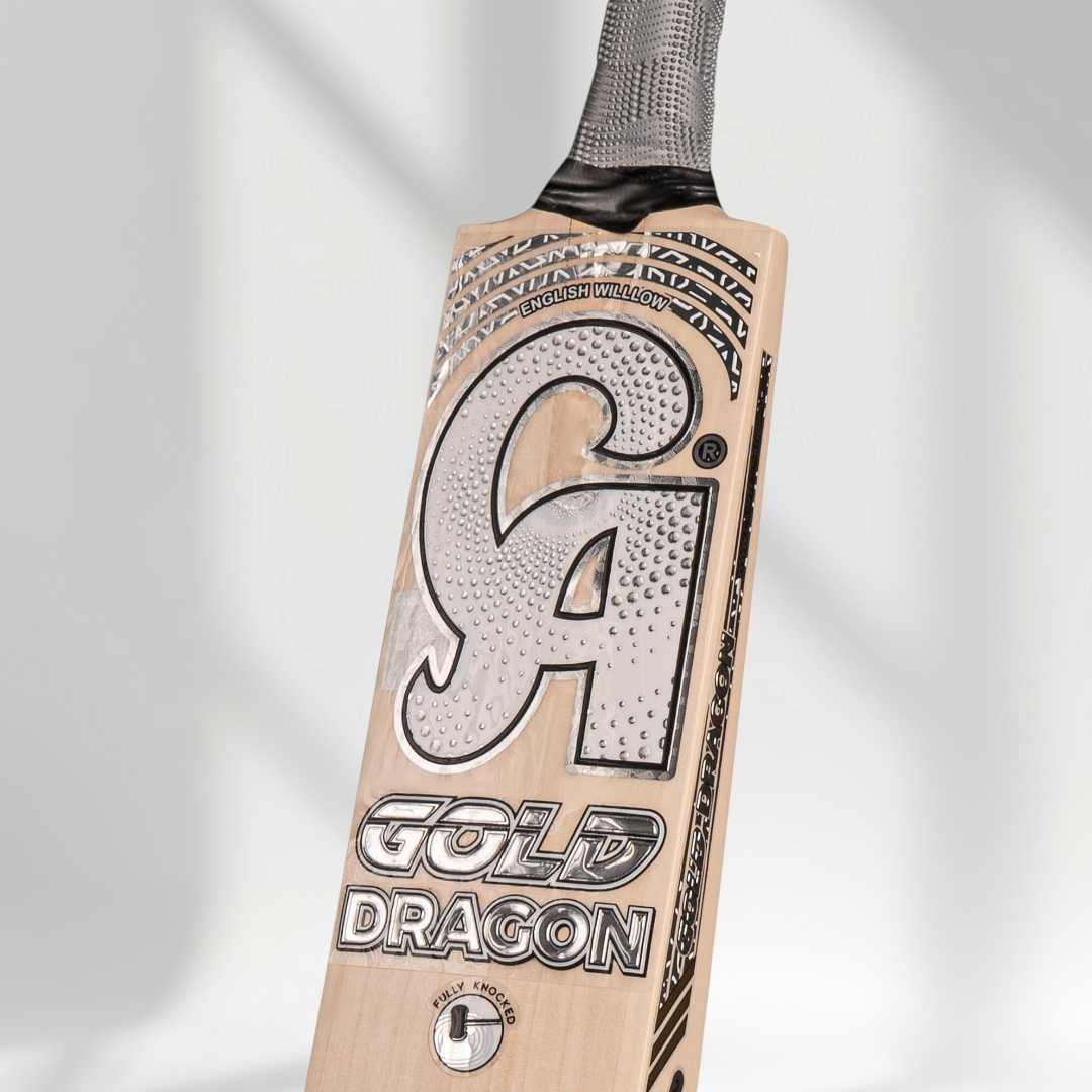 The CA Gold Dragon Cricket Bat is a premium English Willow bat crafted for players who demand both power and style. Made from top-grade willow with clean, straight grains, it offers strength, durability, and excellent performance on the pitch. Its large sweet spot and thick edges make it perfect for hitting powerful strokes, while the balanced weight and light pickup allow players to play both attacking and controlled shots with ease.